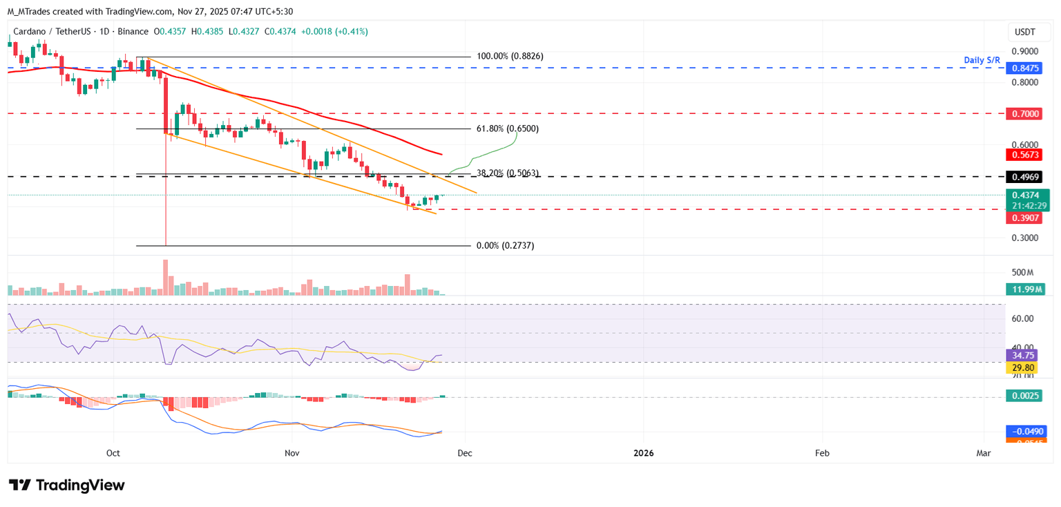 - El panorama técnico sugiere una recuperación adicional, con ADA apuntando a 0.50$.