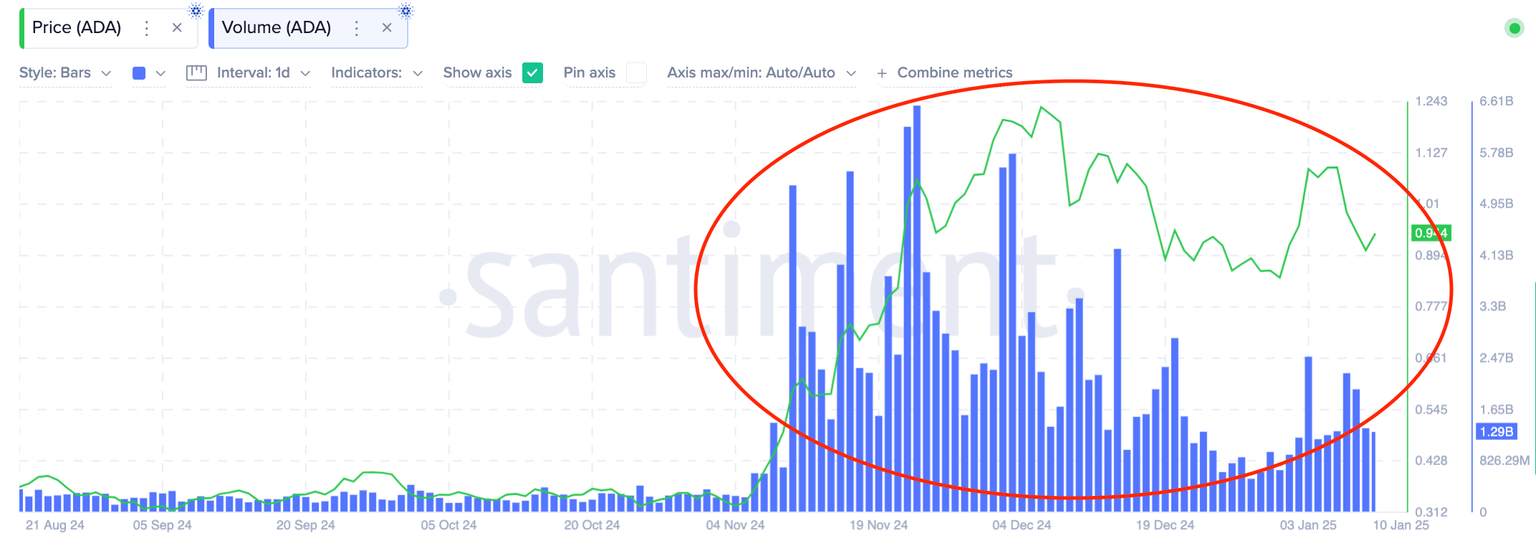 Los volúmenes de negociación de Cardano se mantienen elevados a pesar del reciente retroceso del mercado