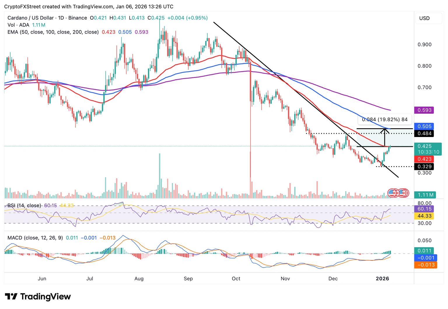 Cardano Previsión: ADA apunta a una ruptura del 20% por encima del nivel clave de la EMA