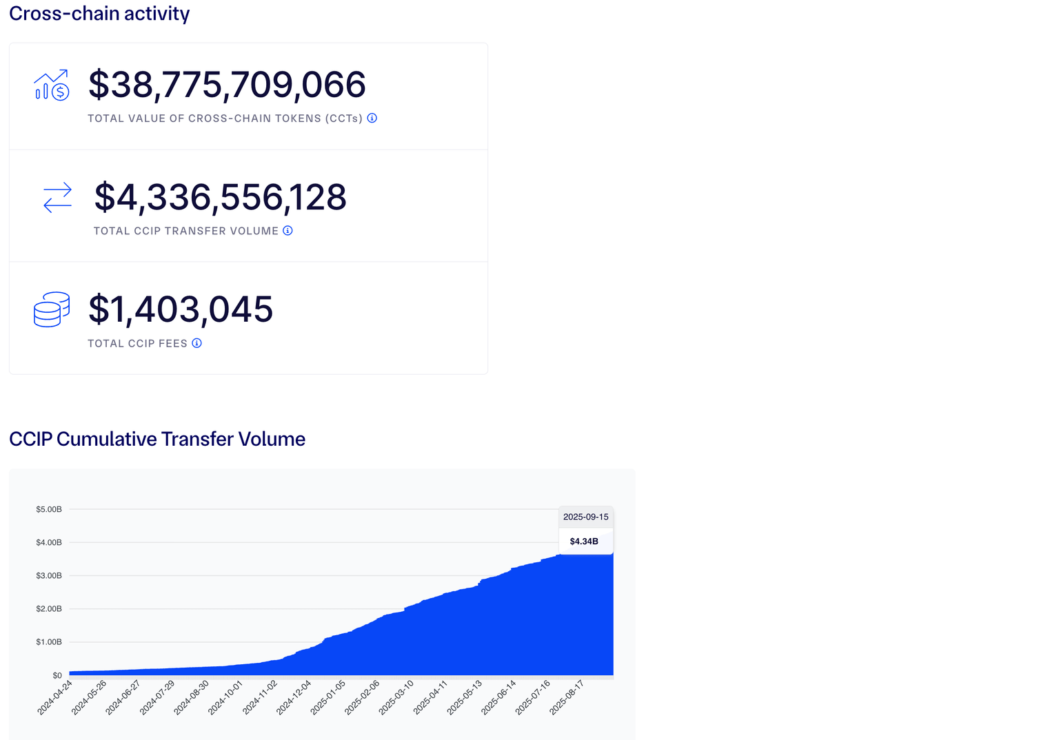 Los datos oficiales de Chainlink muestran que el CCIP está activo en 60 cadenas diferentes, con un volumen de transferencia acumulado de 4.34 mil millones de dólares, y el valor total de los tokens entre cadenas supera los 38.77 mil millones de dólares. Además, DeFiLlama clasifica a Chainlink como la red de oráculos descentralizados más grande basada en el Valor Total Asegurado (TVS) de más de 62 mil millones de dólares.