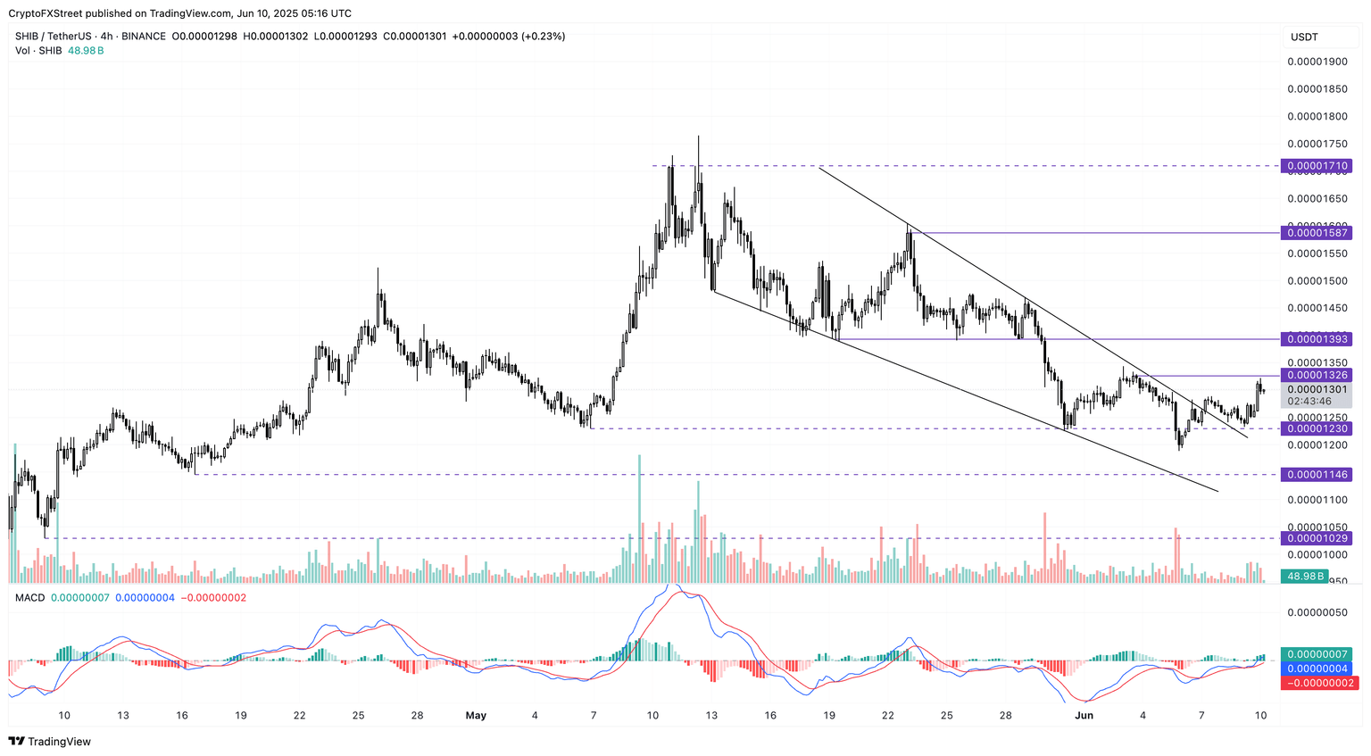 A pesar de un rebote desde el suelo de soporte de 0.00001230$, destacado por la reversión a finales de mayo, SHIB lucha por superar el máximo semanal en el gráfico de 4 horas en 0.00001329$. Un empuje limpio por encima de esta resistencia podría impulsar a SHIB hacia el nivel de 0.00001393$, que actuó como un suelo de soporte crucial el mes pasado.
