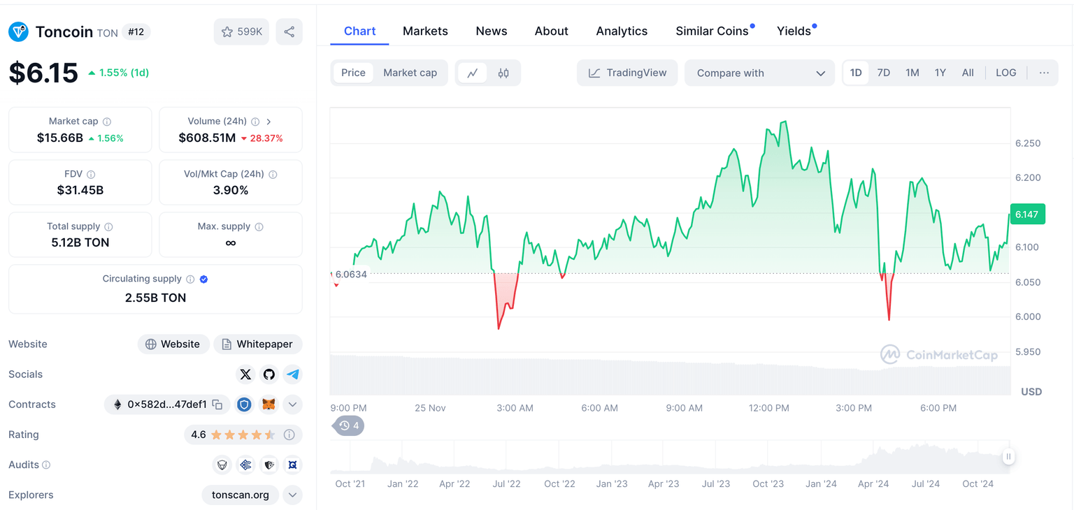 El 23 de noviembre, apenas 48 horas después de que se anunciara la salida de Gensler, el precio de TON entró en una gran ruptura hasta un nuevo máximo de 90 días de 6.60$.