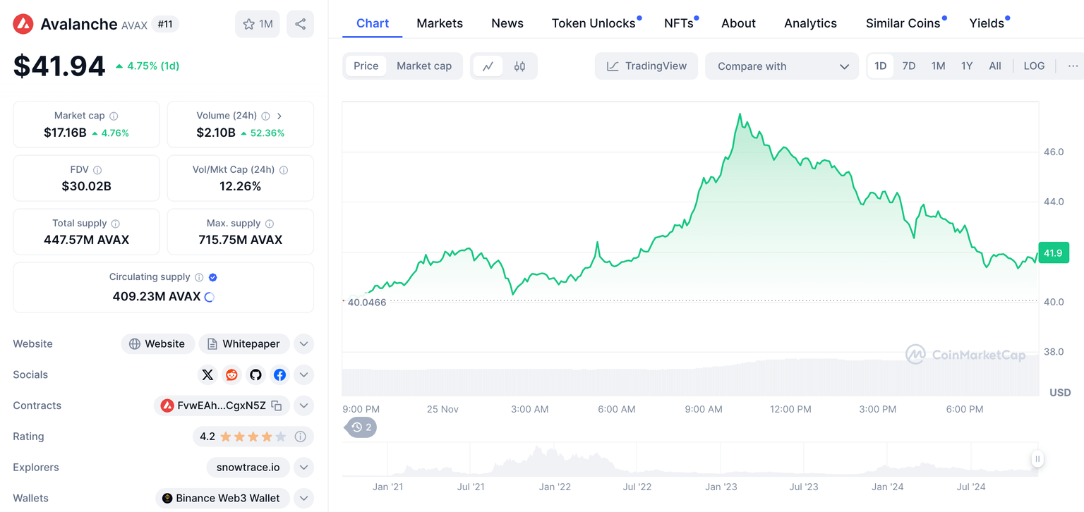 - Avalanche (AXAX): ganancias del 5% hoy: