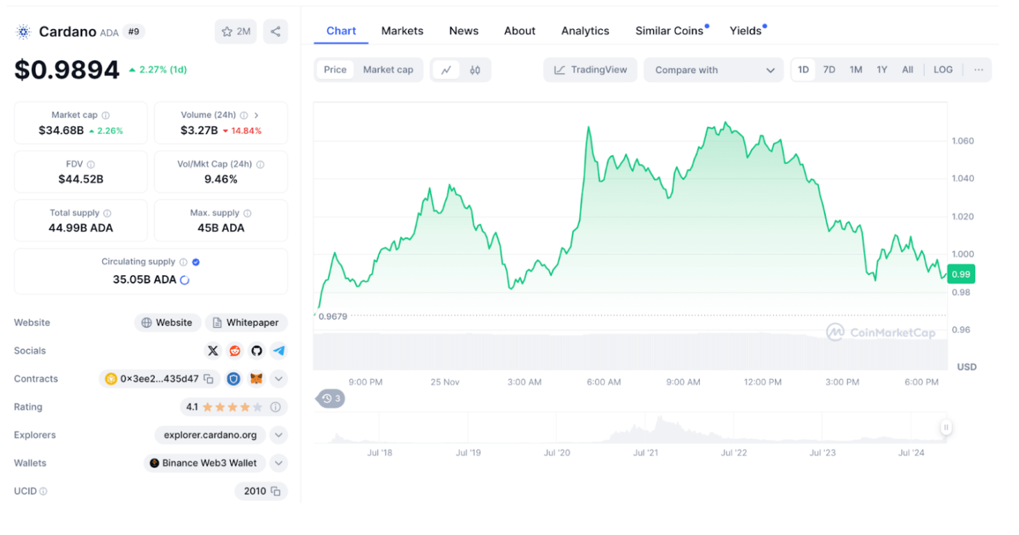 Acción del precio de Cardano (ADA) | 25 de noviembre de 2024 | Fuente: CoinmarketCap