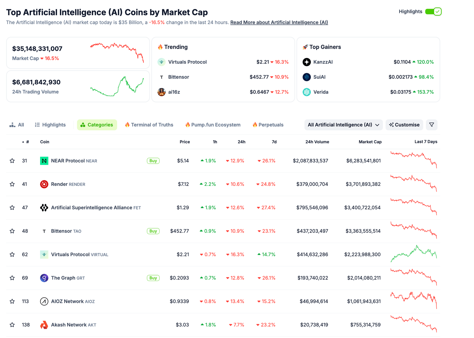 Gráfico del día: La capitalización del mercado del sector de IA en criptomonedas cae por debajo de 35 mil millones de dólares en medio de vientos bajistas de Google y la Fed de EE.UU.