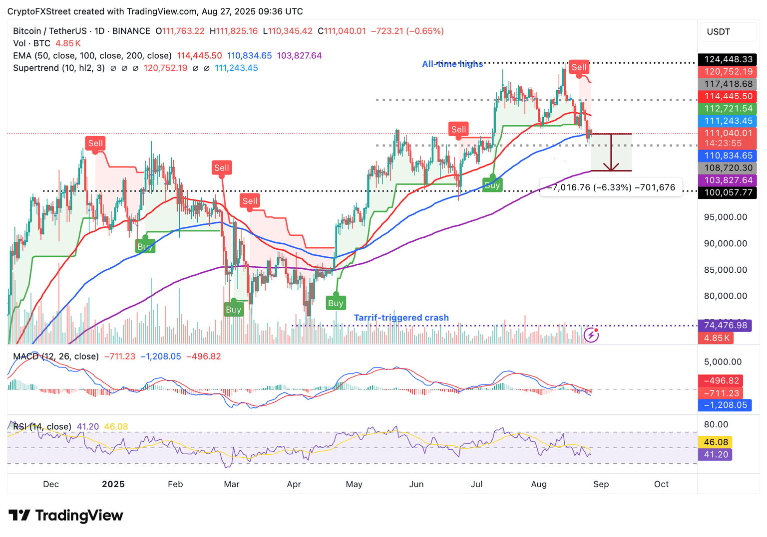 La EMA de 100 días proporciona soporte a corto plazo en 110.834$. Sin embargo, persisten los riesgos a la baja, particularmente con el indicador de convergencia/divergencia de medias móviles (MACD) manteniendo una señal de compra desde el 17 de agosto.