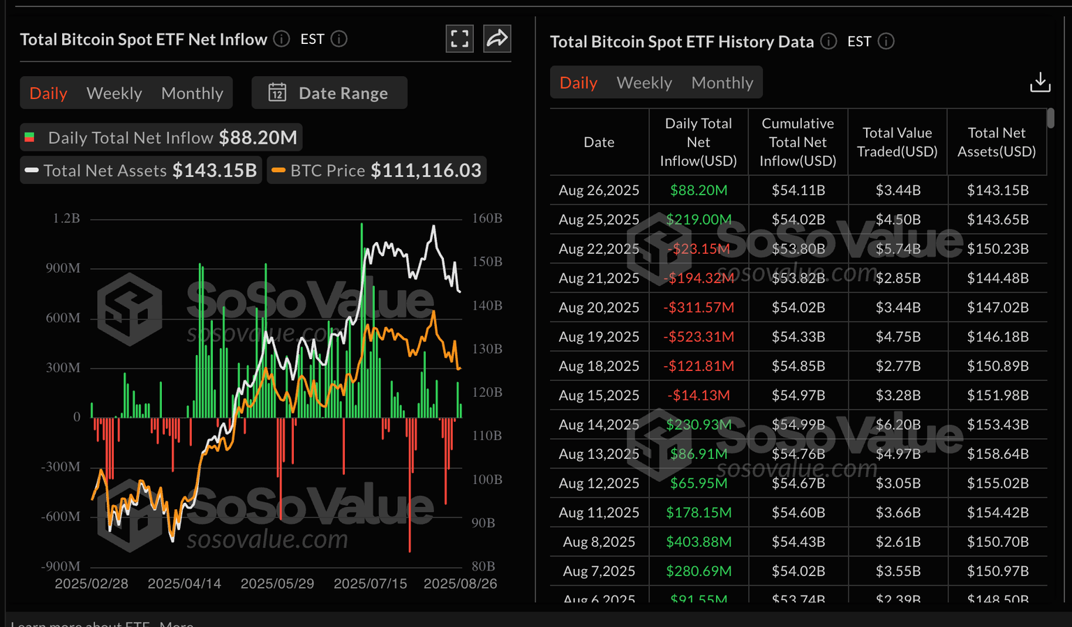 Datos de ETF al contado de Bitcoin | Fuente: SoSoValue
