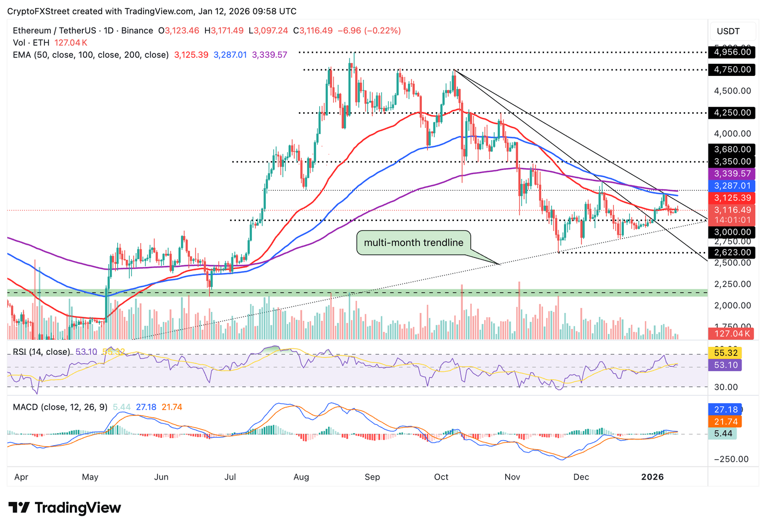 Un cierre diario por encima de la EMA de 50 días confirmaría una ligera ventaja alcista. Los operadores deben estar atentos a una señal de compra clara del indicador MACD en el gráfico diario antes de invertir todo en ETH.