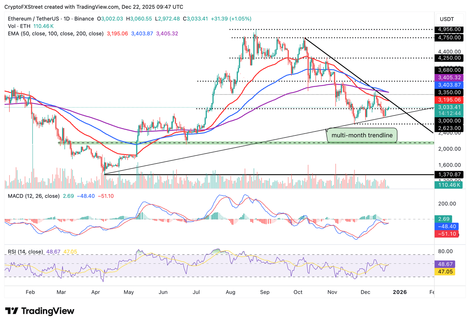 - Ethereum recupera impulso por encima de 3.000$ pero aún se mantiene por debajo de la EMA de 50 días.