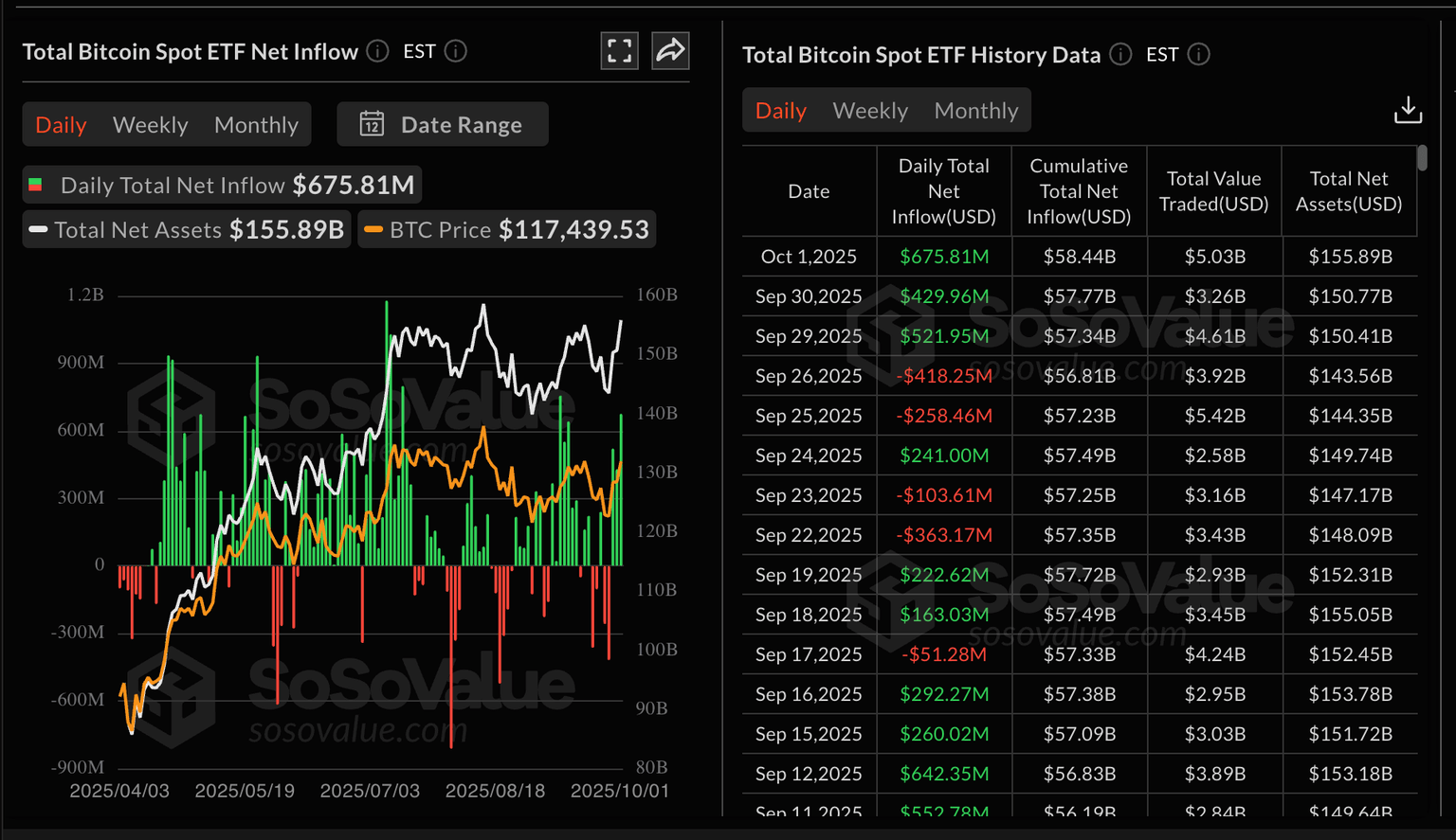 Estadísticas de ETF de Bitcoin | Fuente: SoSoValue