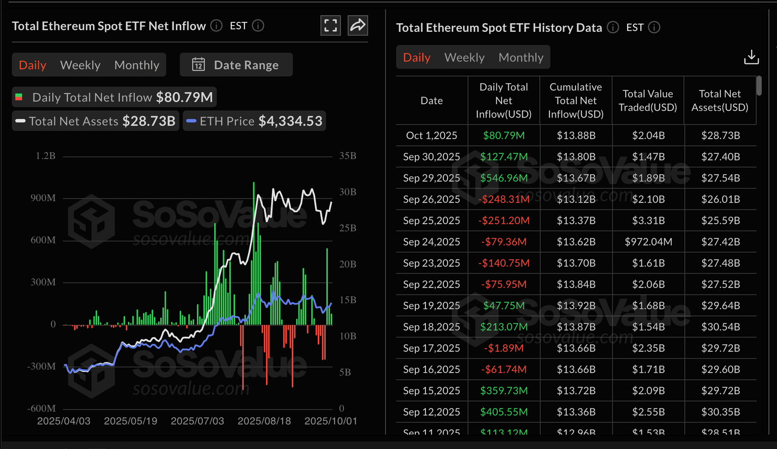 Estadísticas de ETF de Ethereum | Fuente: SoSoValue