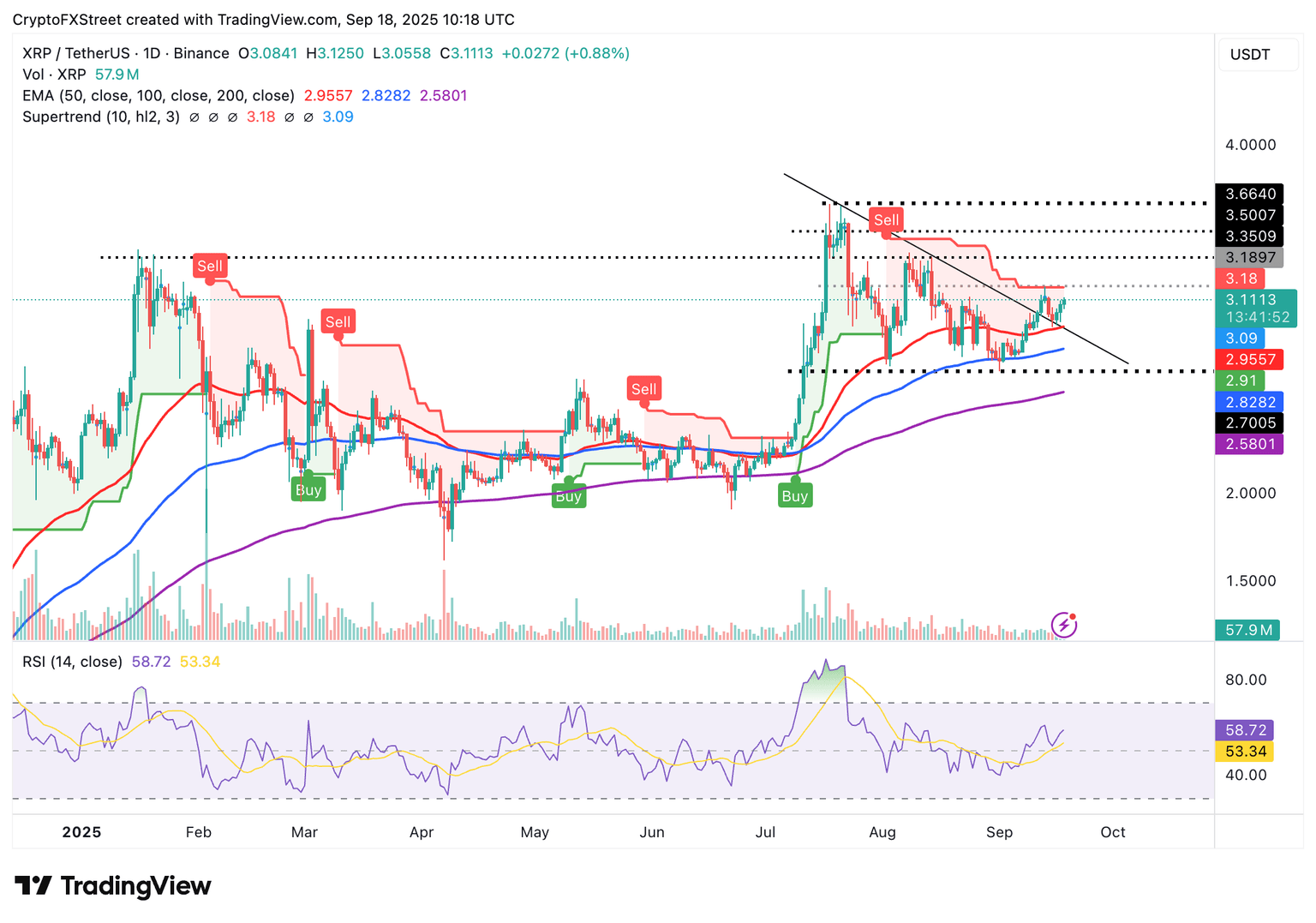 - Los toros de XRP recuperan el control de la tendencia, apuntando a una ruptura hacia el máximo histórico de 3.66 $.