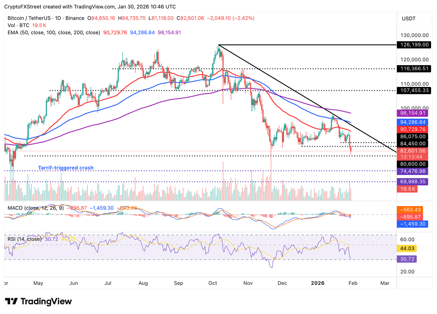 Gráfico del día: El Bitcoin apunta al soporte de 80.000$