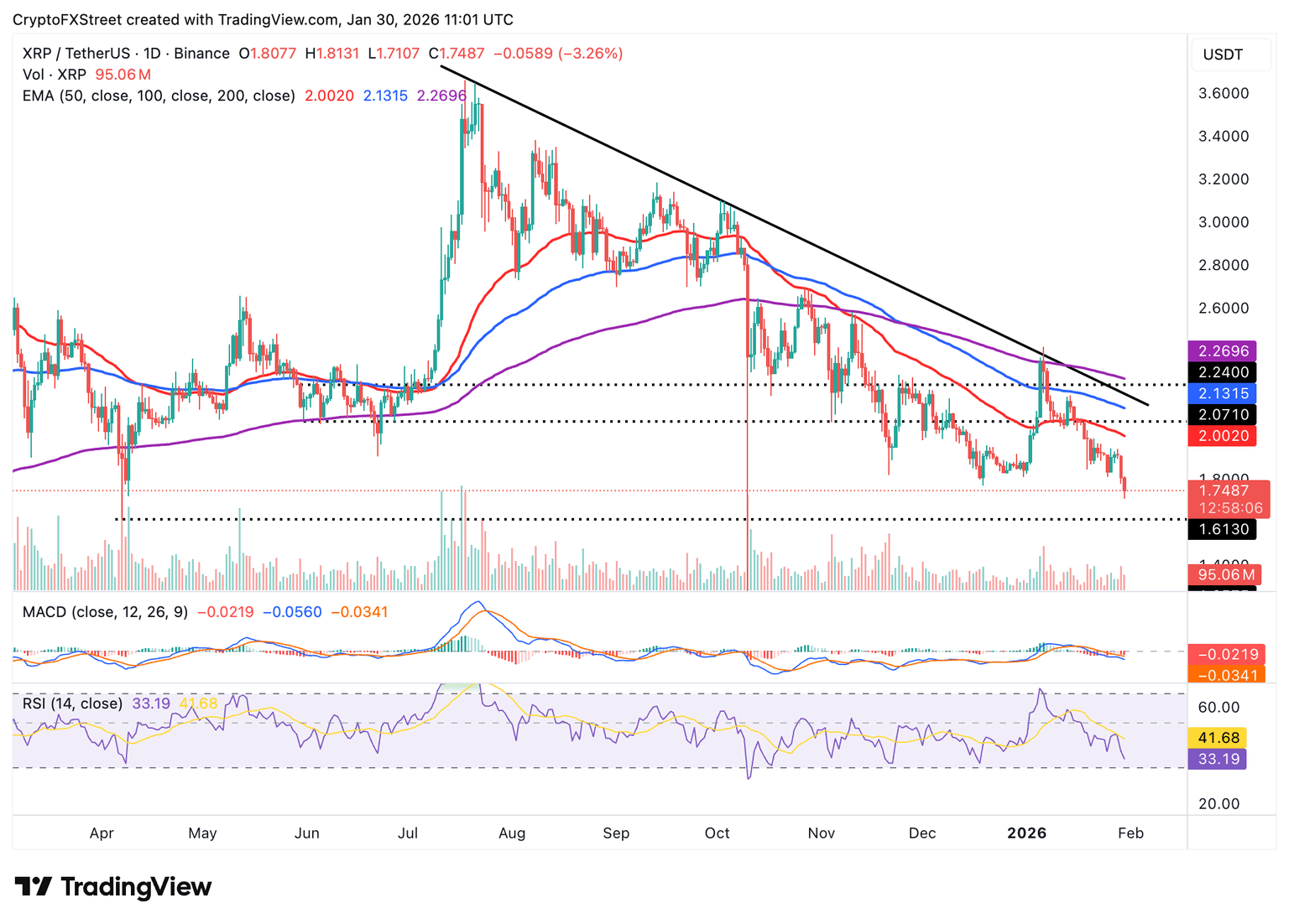 - El soporte de XRP en abril en 1.61$ está en el foco a medida que el sentimiento del mercado se deteriora y los técnicos se debilitan.