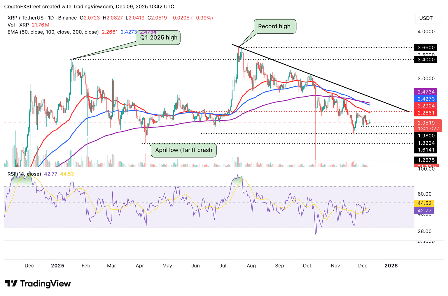 - XRP se negocia lateralmente por encima de su soporte de 2.00$, mientras las entradas acumulativas de ETF se acercan al hito de 1.000 millones de dólares.