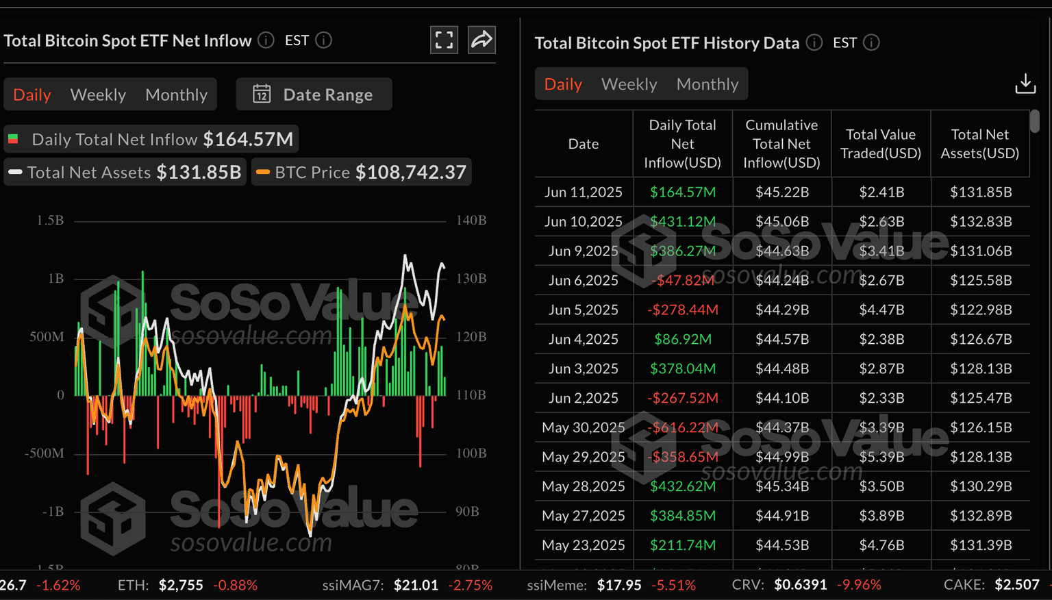 Estadísticas de ETFs al contado de Bitcoin | Fuente: SoSoValue