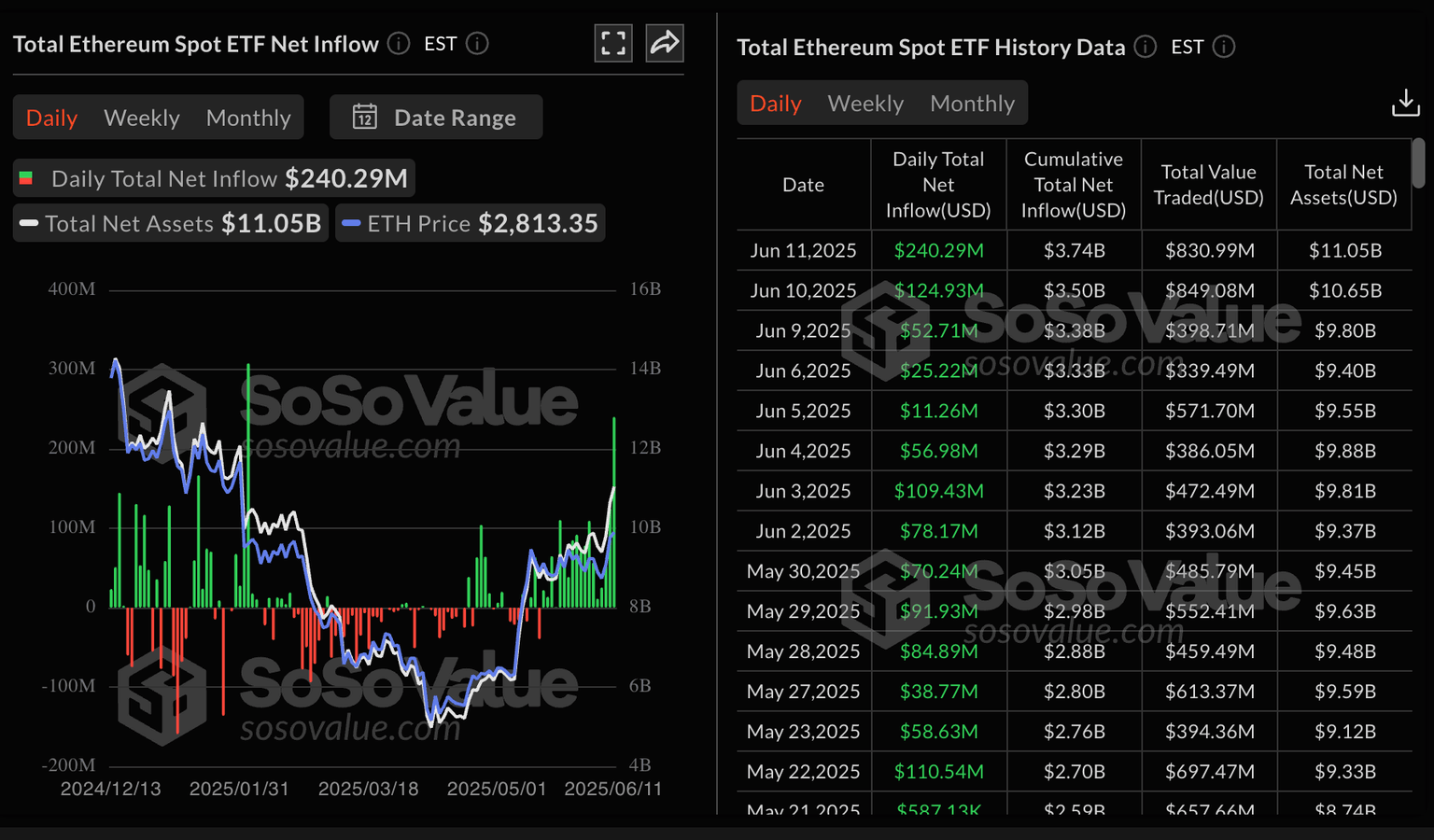 Estadísticas de ETFs al contado de Ethereum | Fuente: SoSoValue