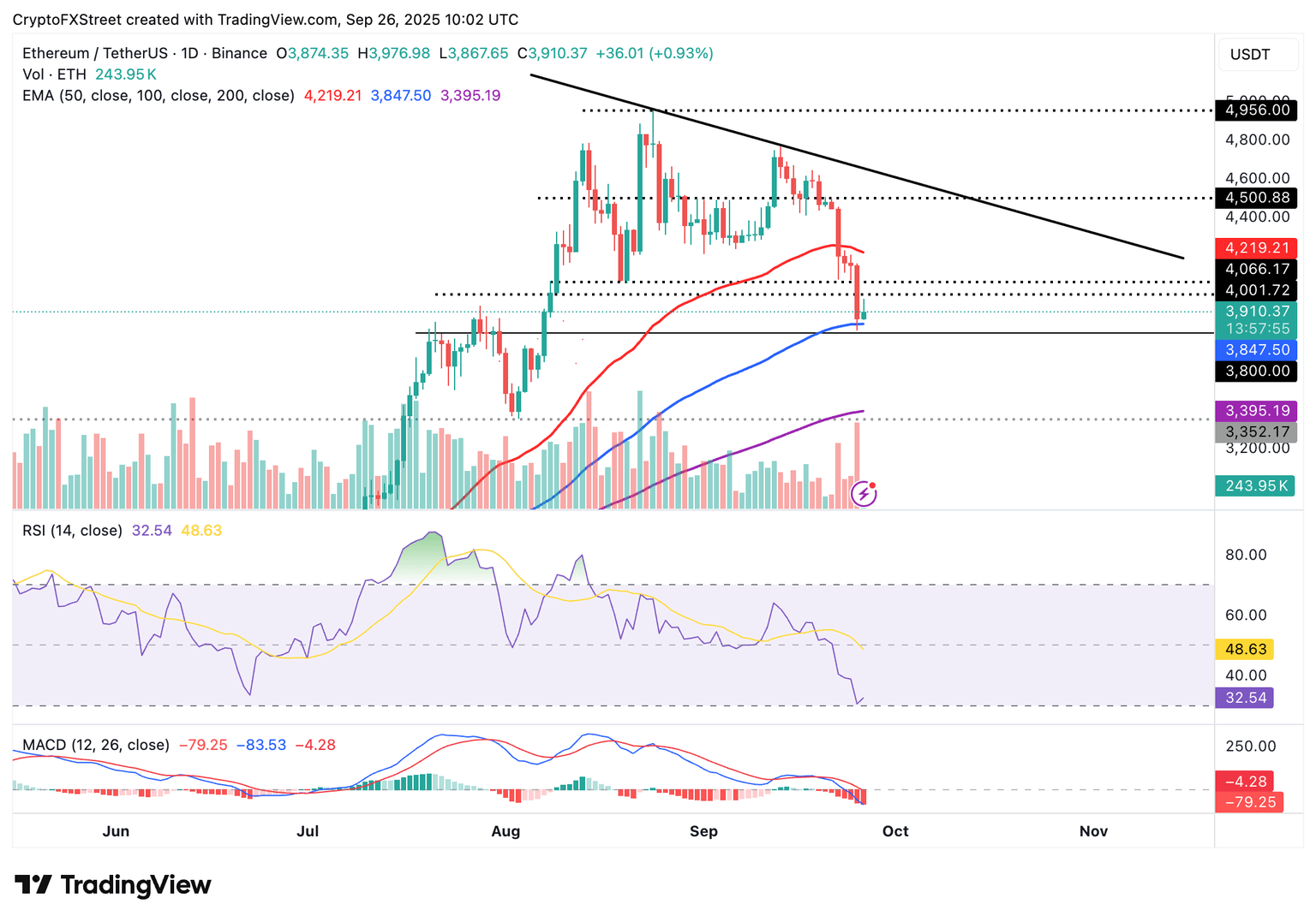 - Ethereum recupera el soporte de la EMA de 100 días mientras el RSI sube desde condiciones de sobreventa.