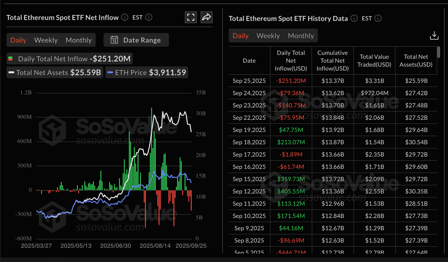 Estadísticas del ETF de Ethereum | SoSoValue