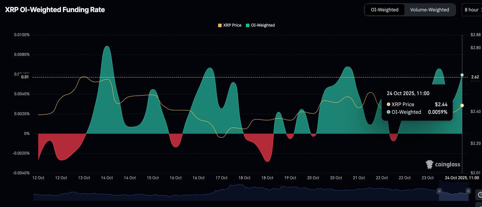 Tasa de financiación ponderada por OI de XRP | Fuente: CoinGlass