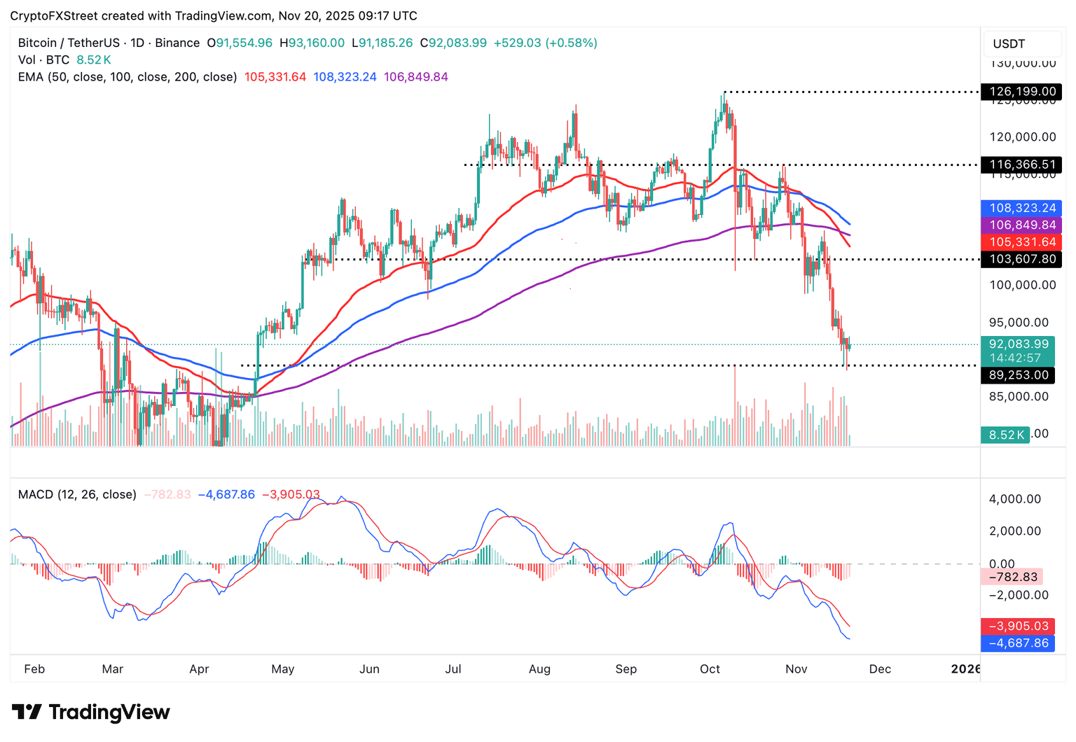 El Bitcoin se está negociando por encima de 92.000$ en el momento de escribir este artículo el jueves, después de haber subido desde su mínimo del día anterior de 88.608$. Los operadores estarán atentos a un cierre diario por encima de 92.000$ o el nivel crítico de 90.000$ para determinar el potencial de recuperación a corto plazo del Bitcoin.