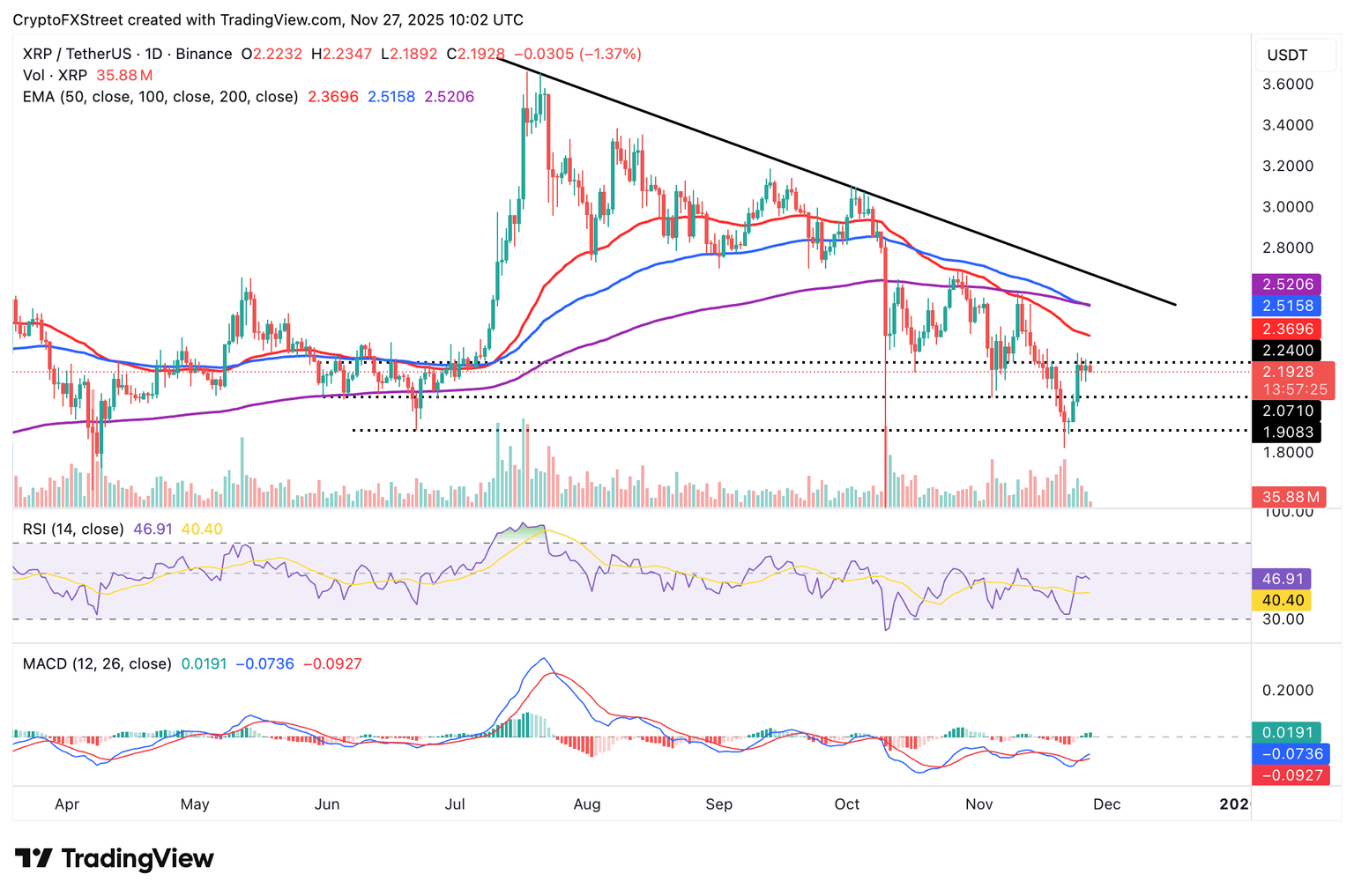 - XRP opera bajo presión, con el impulso limitado por debajo de 2.30$.