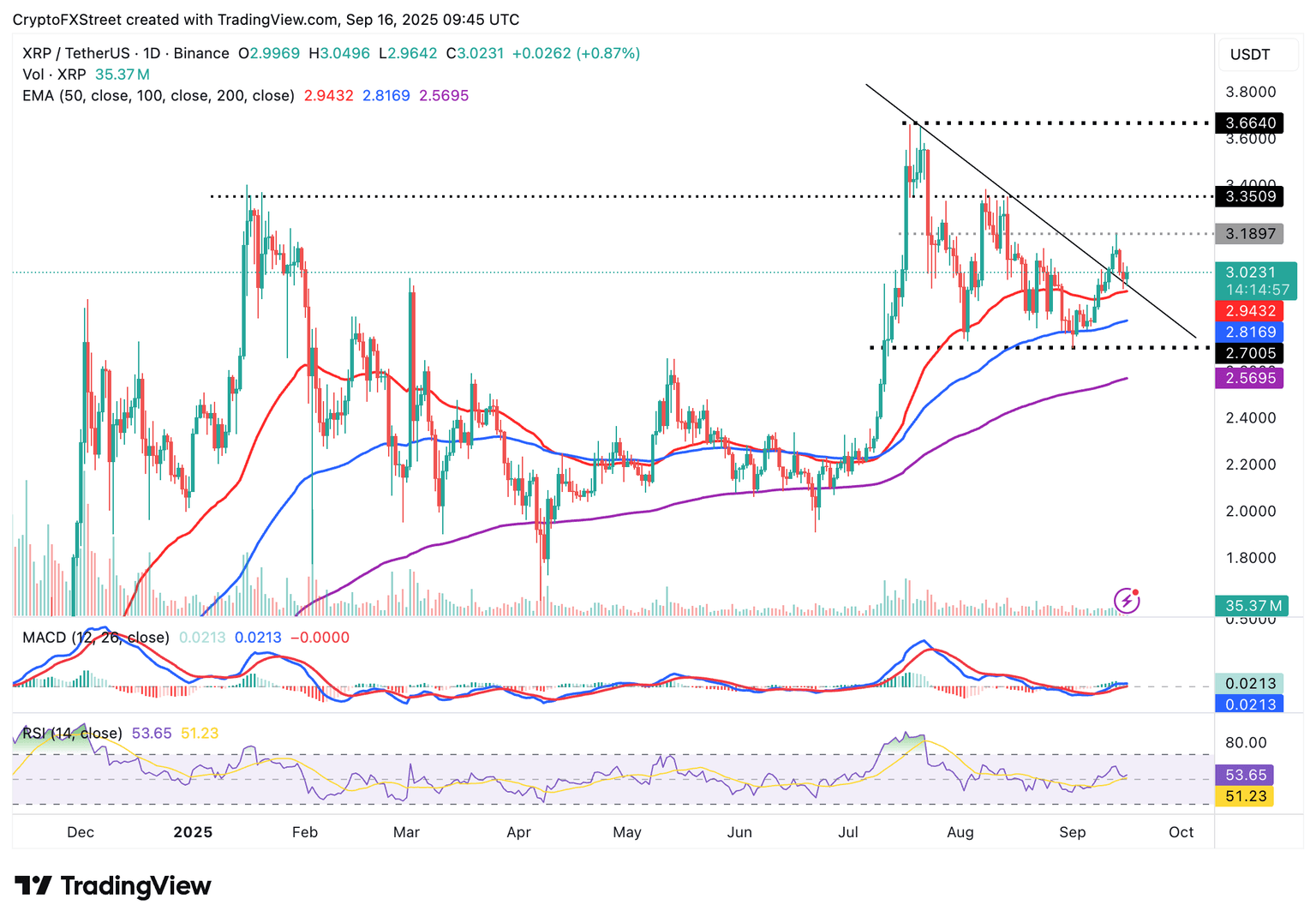 - XRP muestra signos de recuperación tras defender el nivel de soporte de 3.00$.