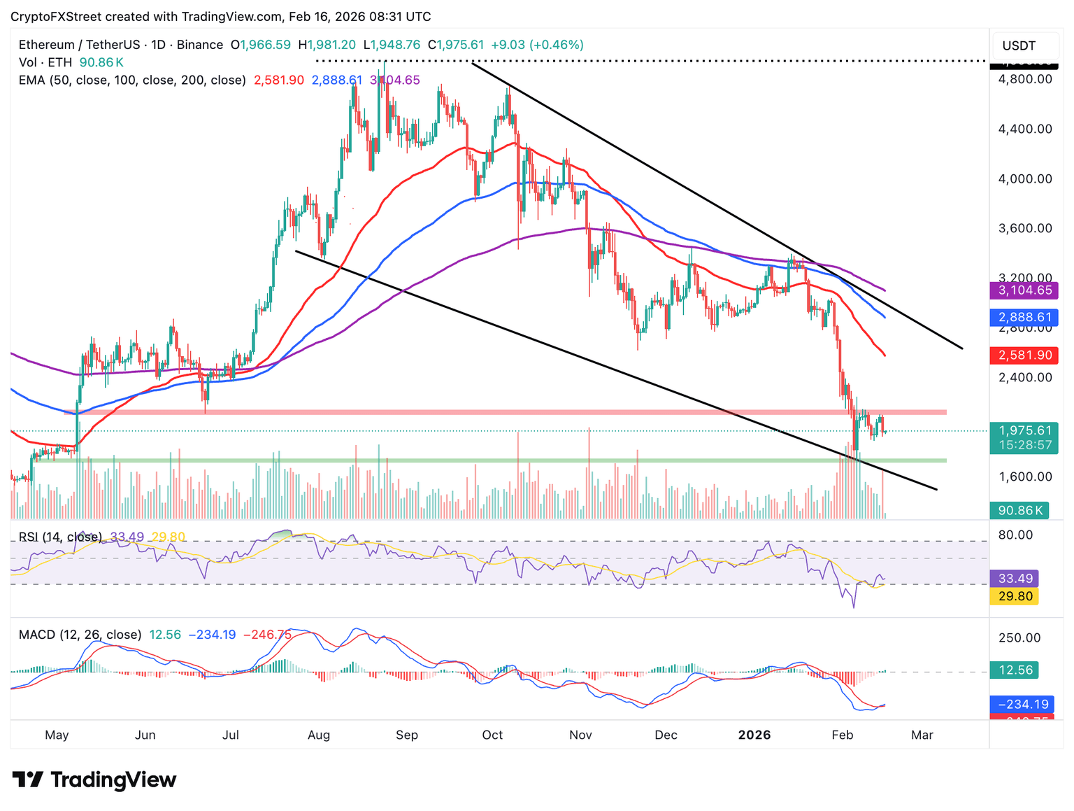 - Los toros de Ethereum defienden el soporte de 1.900$ desde los recientes máximos de 2.107$, pero los débiles derivados siguen siendo el foco.