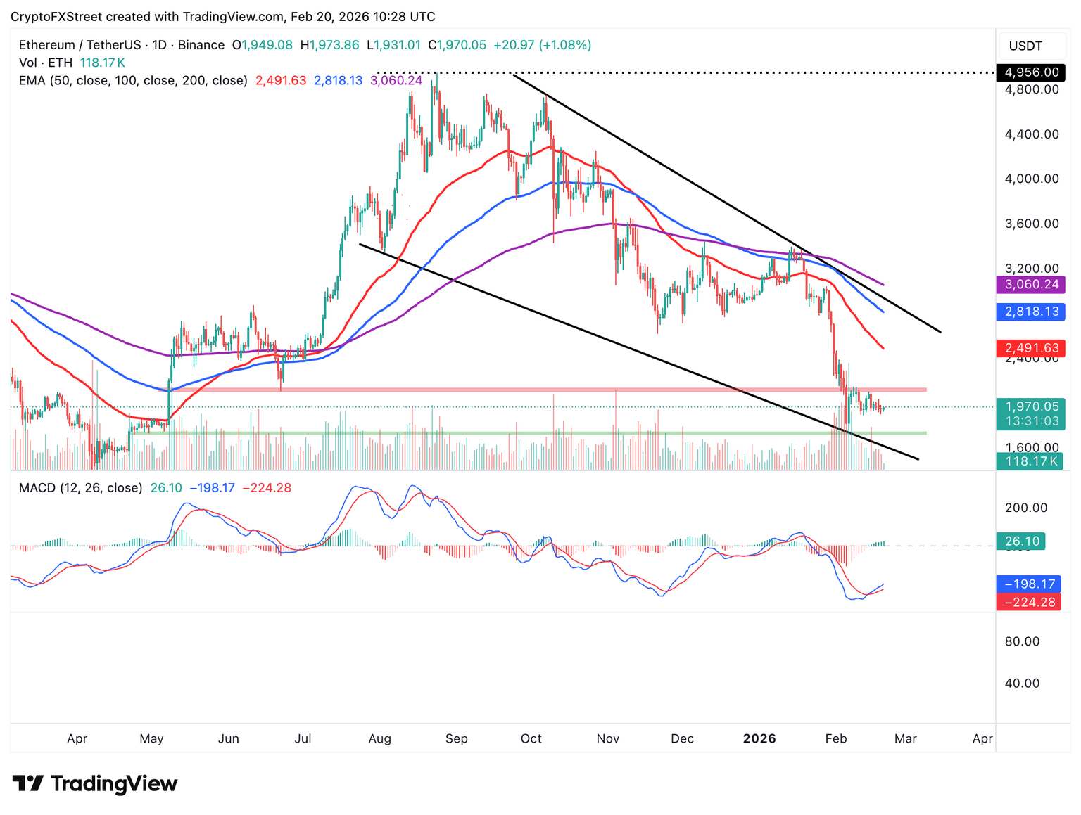 Ethereum está subiendo hacia la resistencia psicológica en 2.000$, mientras el impulso alcista se construye desde un mínimo intradía de 1.932$. A pesar de que el token líder de contratos inteligentes cotiza lateralmente en un rango con soporte alrededor de 1.900$ y resistencia en el rango inferior de 2.000$, el indicador MACD se mantiene por encima de su línea de señal en el gráfico diario, sugiriendo que el impulso alcista se está acumulando. Las barras del histograma verde se expanden por encima de la línea cero del MACD, lo que lleva a los inversores a aumentar su exposición.