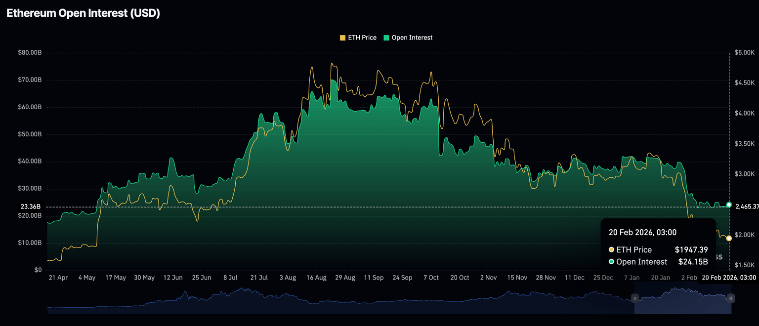 - Ethereum cotiza lateralmente en un rango en medio de señales técnicas mixtas y un ligero aumento en el interés abierto de futuros a 24.15 mil millones de dólares.