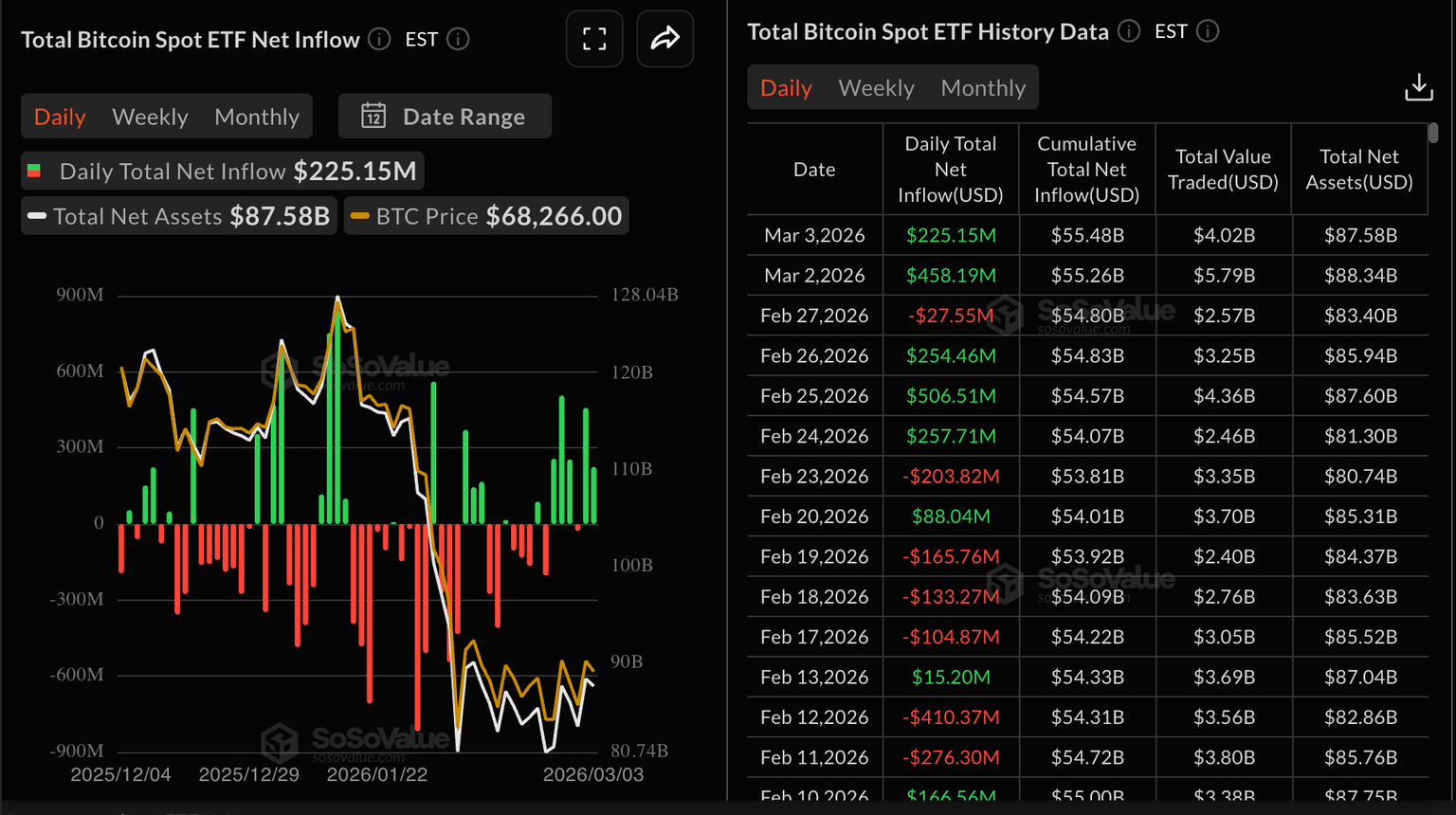 Las entradas constantes indican que el apetito por activos de riesgo como el Bitcoin está mejorando a pesar de la incertidumbre derivada de la guerra en Oriente Medio.
