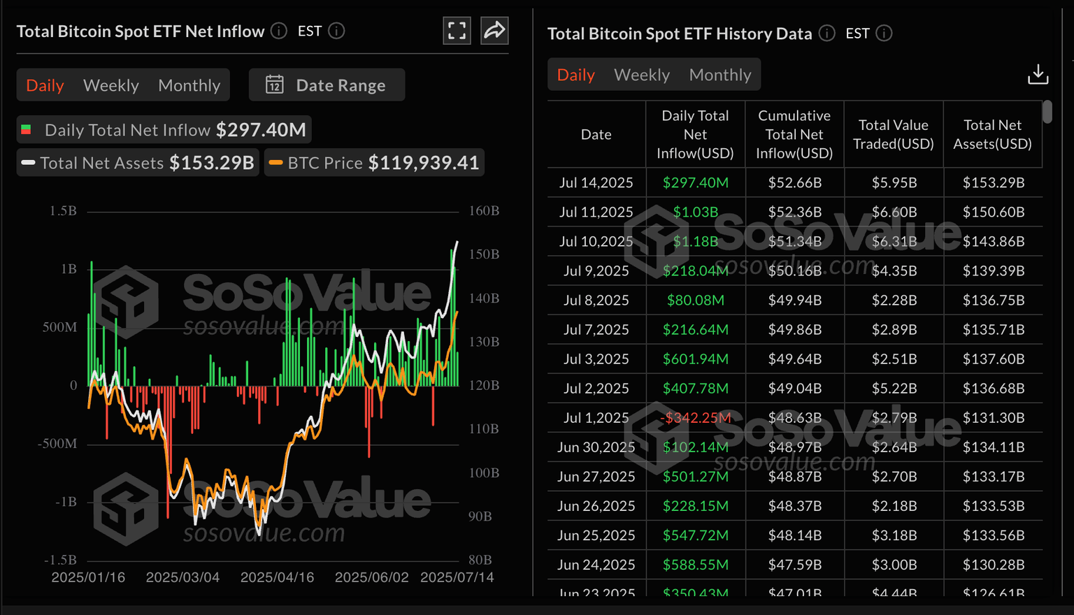 Antes de que el precio del Bitcoin alcanzara nuevos máximos históricos, el ETF al contado de EE.UU. experimentó dos días consecutivos de entradas que superaron los 1.000 millones de dólares. Los datos de SoSoValue destacan aproximadamente 1.180 millones de dólares en entrada neta el jueves, con 1.030 millones de dólares fluyendo el viernes.