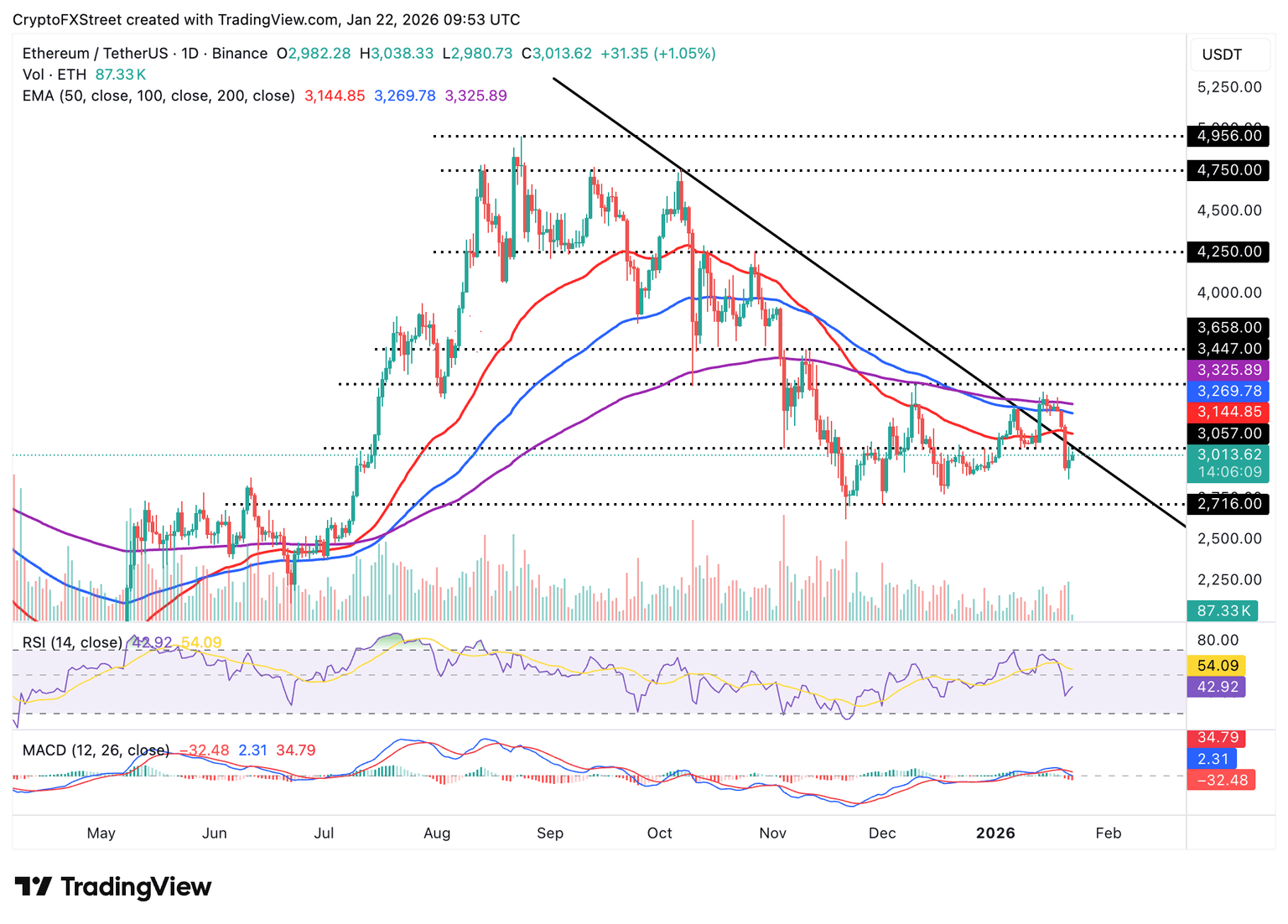 - Ethereum cotiza alrededor de 3.000$ en medio de la volatilidad más amplia del mercado cripto y el debilitamiento del interés institucional.