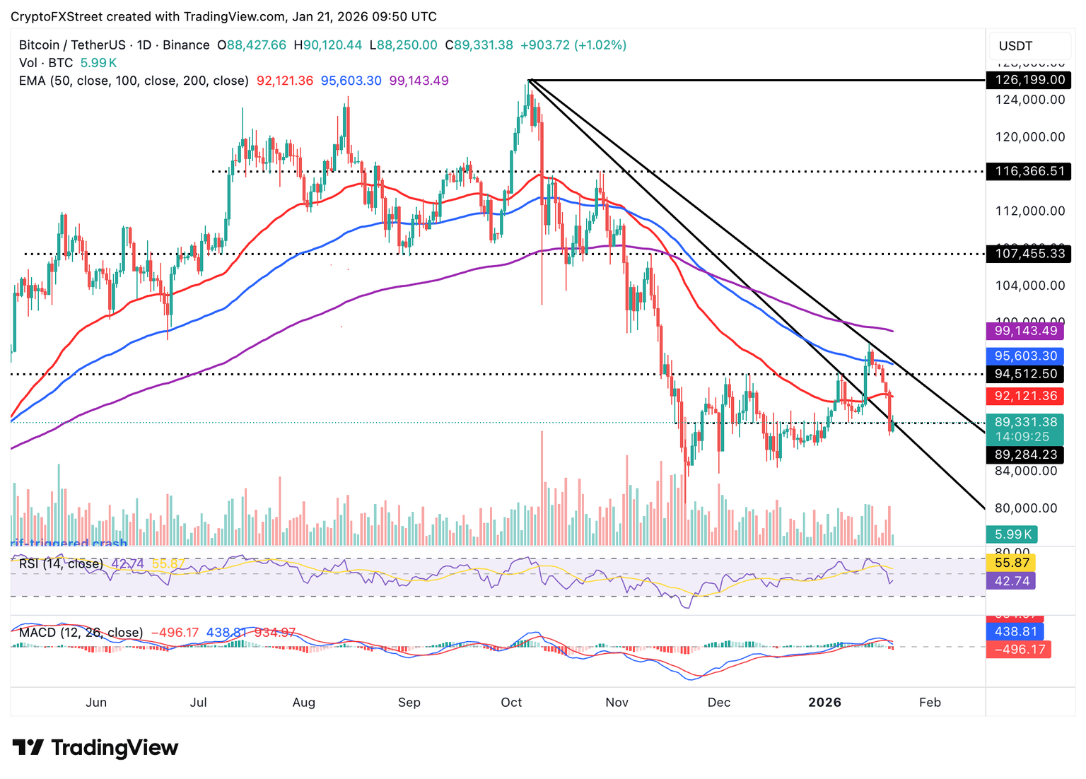 El Bitcoin (BTC) está exhibiendo estabilidad después de seis días consecutivos de descenso, cotizando por encima de 89.000$ en el momento de escribir el miércoles. El mercado de criptomonedas en general está lleno de tensiones geopolíticas, ya que está afectado por riesgos macroeconómicos y un interés institucional y minorista en declive.
