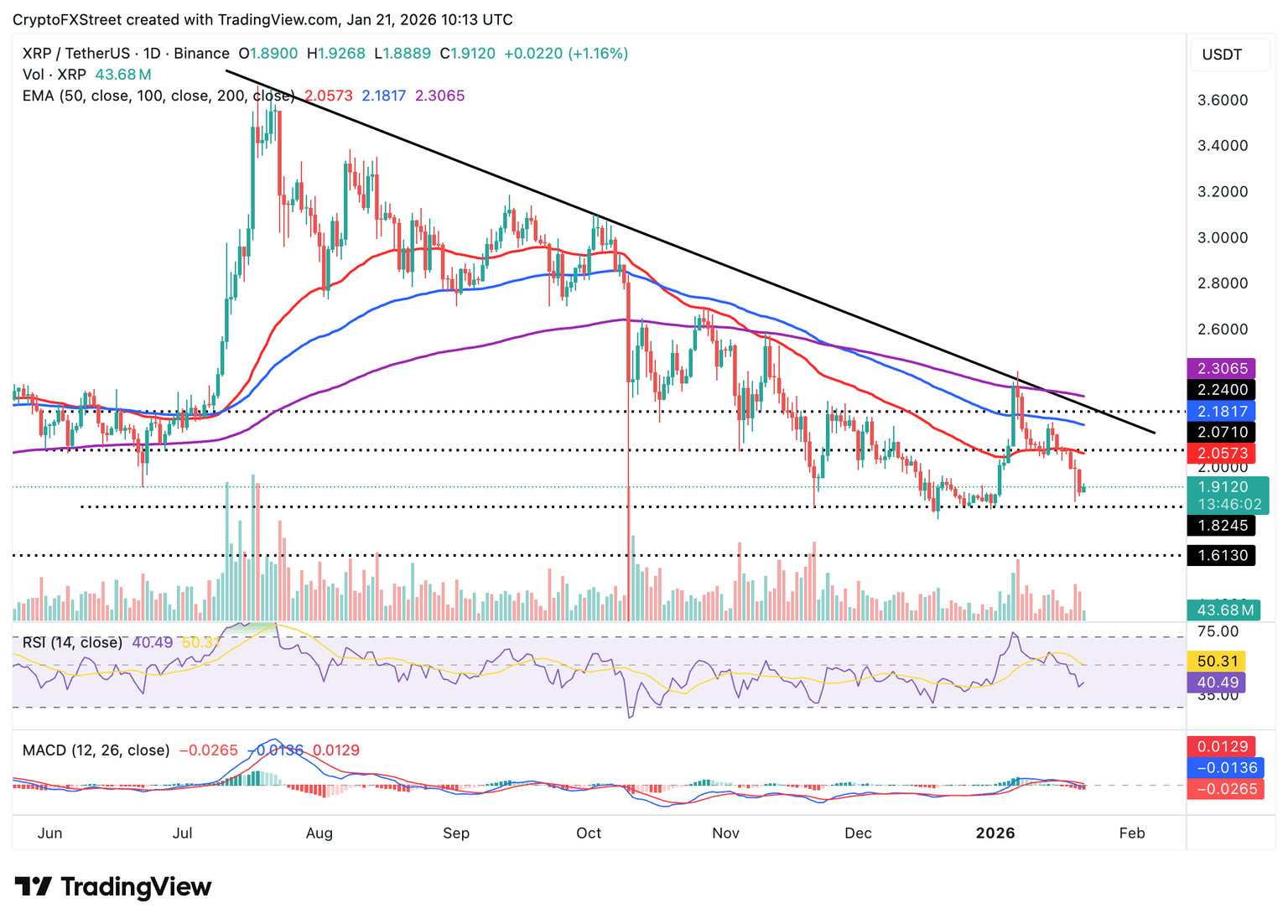 El indicador MACD confirma la perspectiva bajista general, ya que se mantiene por debajo de la línea de señal. Sus barras del histograma rojo continúan expandiéndose por debajo de la línea cero, acentuando el potencial a la baja de XRP. Extender la tendencia bajista por debajo de 1.90$ podría desencadenar una venta masiva hasta el mínimo de abril de 1.61$.