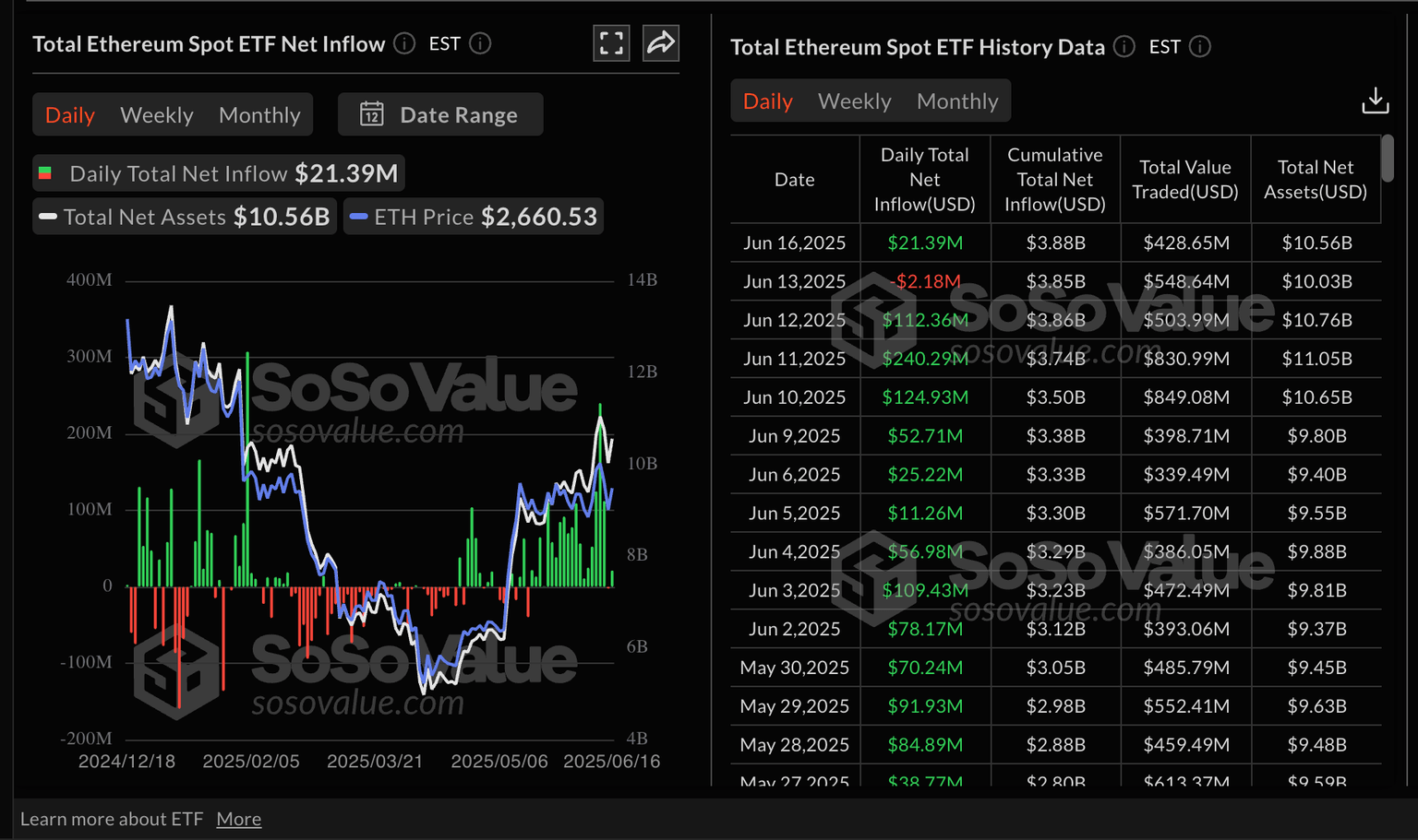 Entradas de ETF de Ethereum al contado | Fuente: SoSoValue
