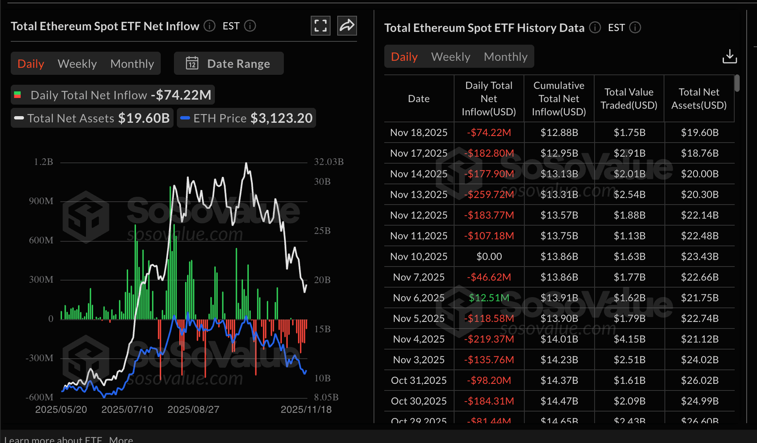 Enfoque de datos: Las salidas de ETF del Bitcoin y Ethereum señalan una demanda debilitada