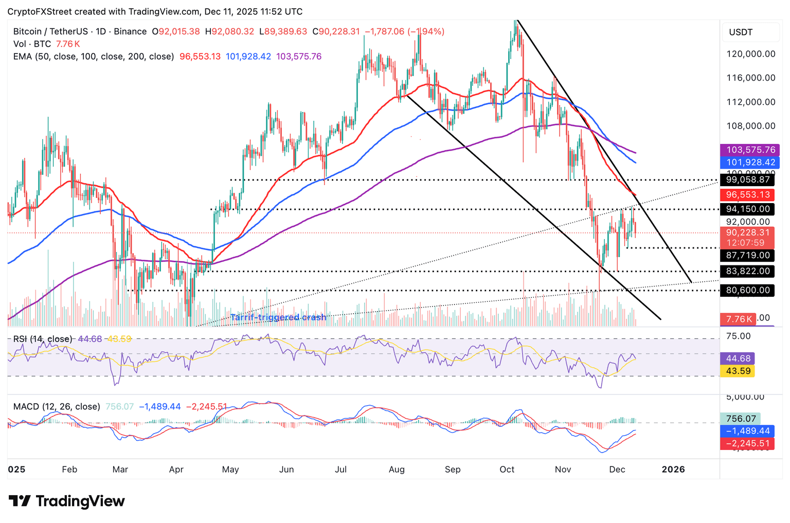El Bitcoin (BTC) se cotiza por encima de 90.000$ en el momento de escribir el jueves, presionado por el sentimiento de aversión al riesgo en el mercado de criptomonedas en general. Las altcoins, incluyendo Ethereum (ETH) y Ripple (XRP), también están en rojo a pesar de que la Reserva Federal (Fed) redujo su tasa de interés de referencia el miércoles.