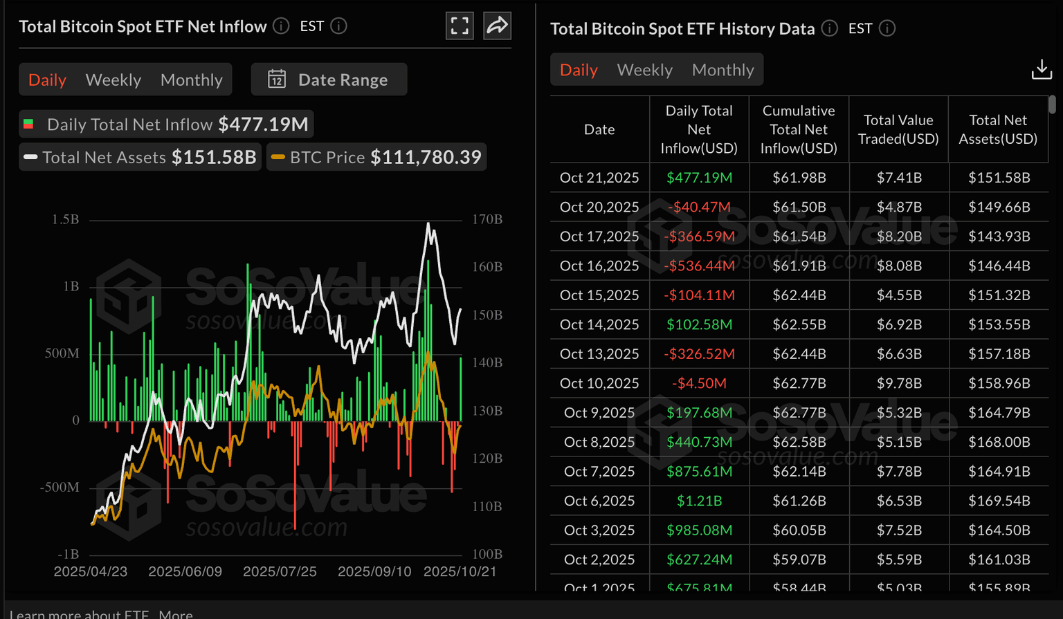 Estadísticas de ETF de Bitcoin | Fuente: SoSoValue