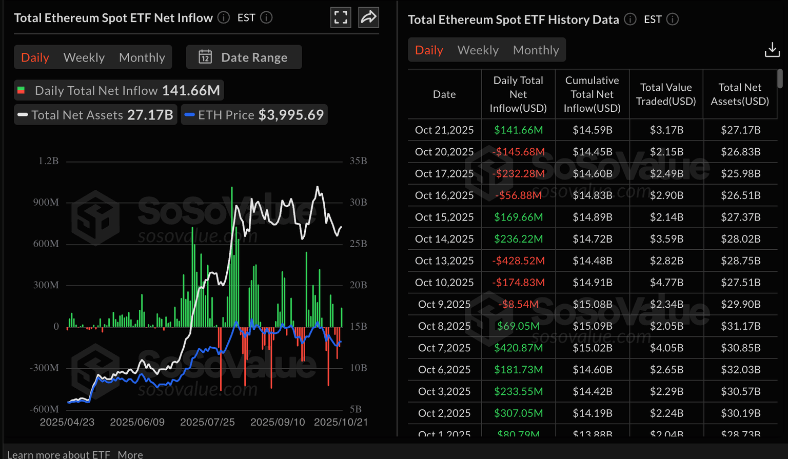 Estadísticas de ETF de Ethereum | Fuente: SoSoValue
