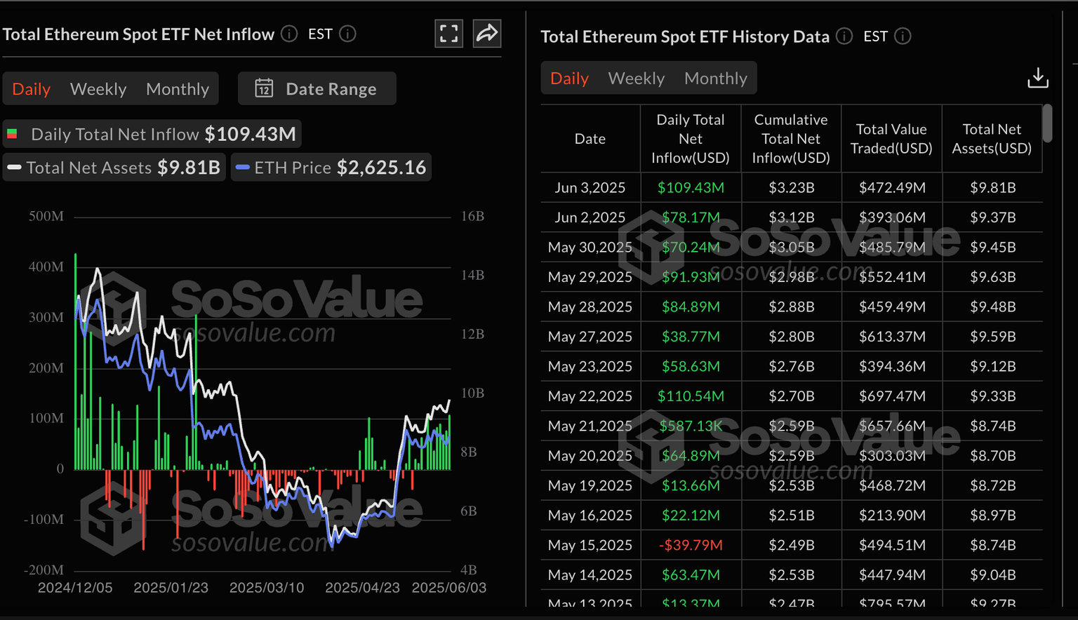 - Ethereum extiende sus ganancias respaldadas por el aumento de las entradas de ETF al contado.