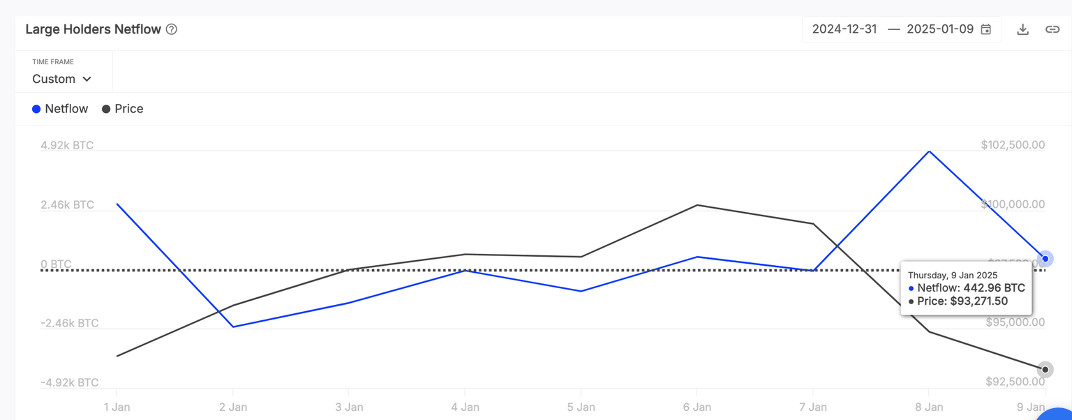 El gráfico anterior muestra cómo las billeteras ballena adquirieron estratégicamente 4.920 BTC el miércoles y otros 442 BTC el jueves, mientras los precios del BTC cotizaban en mínimos de 40 días.