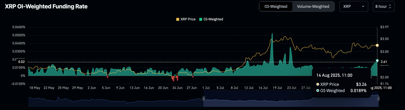 Tasa de financiación ponderada de XRP | Fuente: CoinGlass