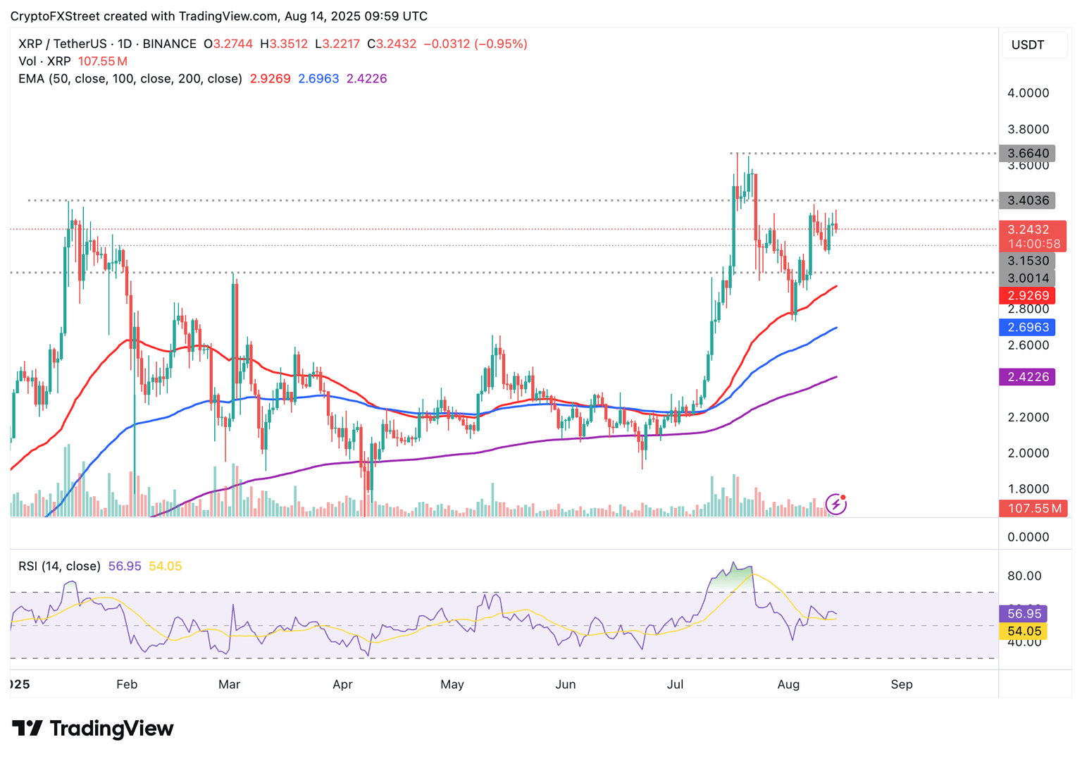 Mientras tanto, el interés en XRP sigue elevado, considerando el aumento constante en la tasa de financiación ponderada de futuros, que promedia el 0.0189%. El gráfico a continuación muestra que la tasa de financiación ponderada cayó ligeramente en negativo el 1 de agosto antes de que los traders aumentaran su exposición, apalancando posiciones largas en XRP.