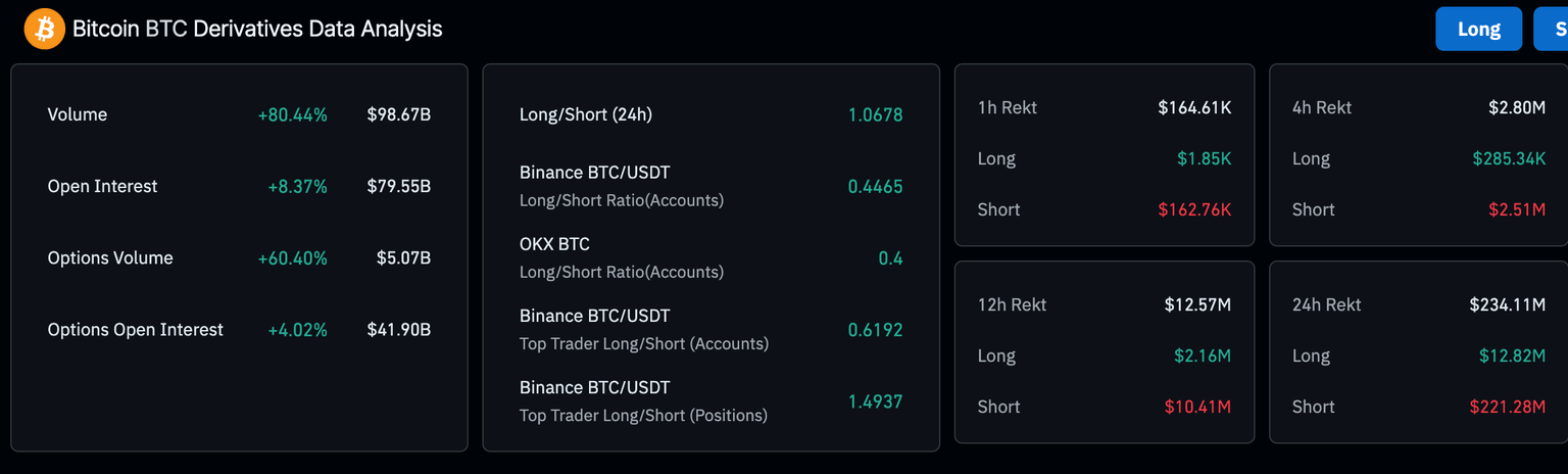 Datos del mercado de derivados de Bitcoin | Fuente CoinGlass