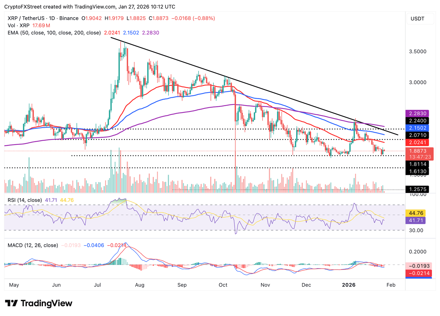 En cuanto a XRP, los bajistas tienen la ventaja, limitando el movimiento del precio por debajo del umbral psicológico de 2.00$. El token de remesas transfronterizas se cotiza a 1.88$ en el momento de escribir esto el martes en medio de señales bajistas.