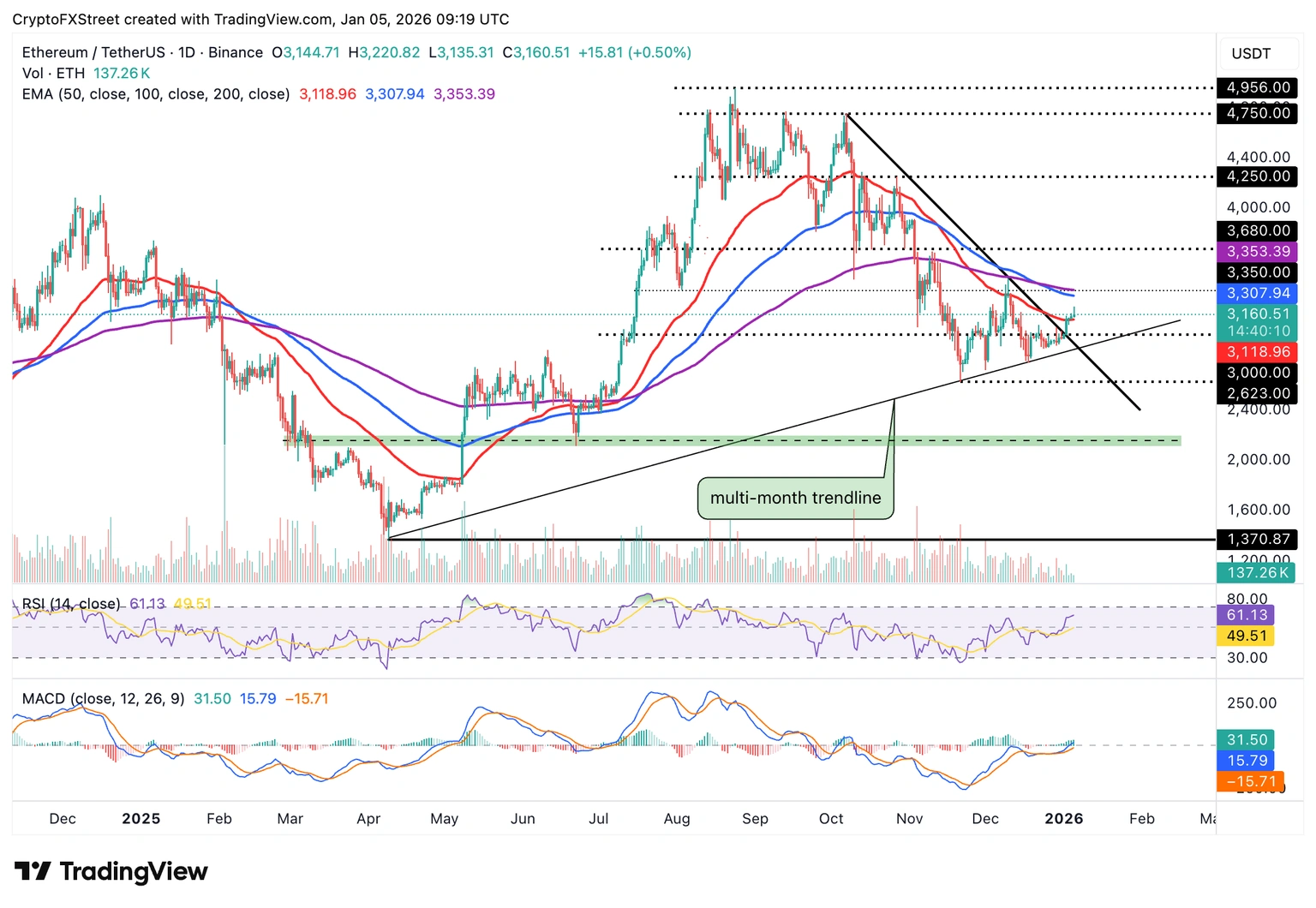 Los operadores estarán atentos a un cierre por encima de la EMA de 50 días para evaluar el potencial de recuperación de Ethereum. Por el contrario, operar por debajo de la misma media móvil podría alentar la toma de ganancias en medio de temores de otra caída por debajo de 3.000$.