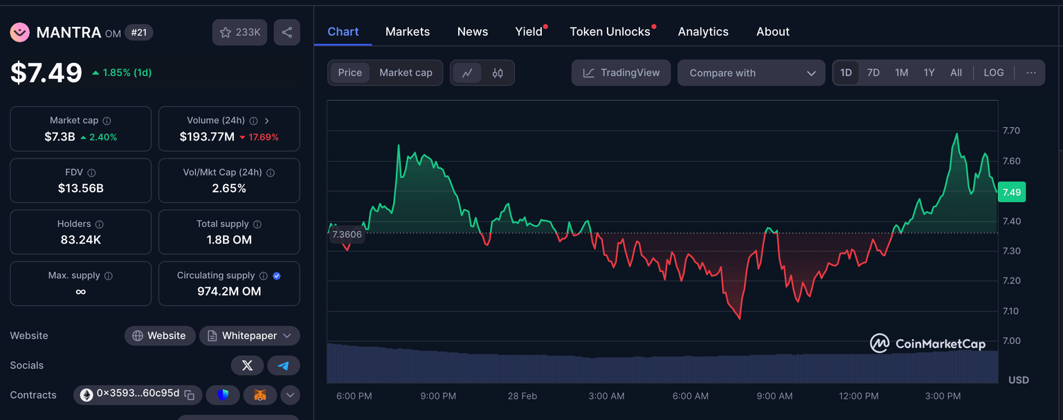 Mantra es un protocolo de tokenización de activos del mundo real. La recuperación del precio de OM se alinea con la narrativa de que algunos inversores estratégicos están optando por trasladar capital a Activos del Mundo Real y a instrumentos de renta fija tokenizados en medio del colapso del mercado.