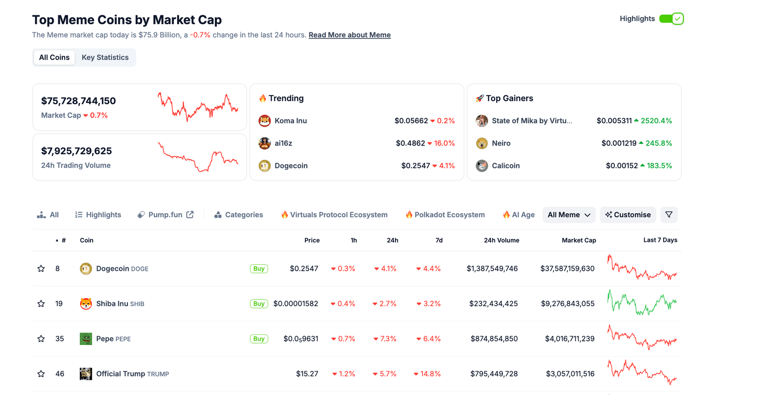 Predicción del precio de Dogecoin: DOGE se estabiliza en 0.25$ mientras PEPE y TRUMP se acercan a pérdidas de dos dígitos