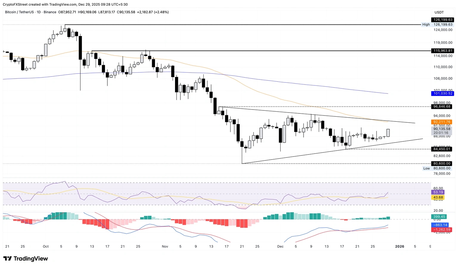 Bitcoin (BTC), Ethereum (ETH) y Ripple (XRP) registran ganancias de aproximadamente un 3% el lunes, recuperando fuerza a mitad de la temporada navideña. A pesar de la liquidez escasa en la temporada navideña, BTC y las principales altcoins están recuperando fuerza mientras el presidente de EE.UU., Donald Trump, impulsa las conversaciones de paz entre Rusia y Ucrania. El panorama técnico para Bitcoin, Ethereum y Ripple cambia gradualmente a alcista a medida que la presión de venta disminuye.